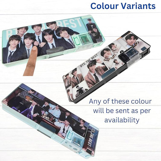 ZAFCO BTS Magnetic Pencil Box Compass Geometry Large Capacity for Kids Boys Girls School Going Children Stationaries Organizer Birthday Return Gift School Supplies (Pack of 1) (Random)
